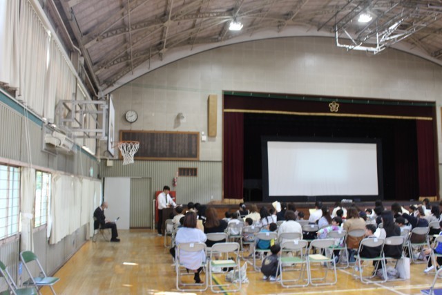 今日は新1年生の就学時健診がありました。就学時健診の流れや本校の特色などについて話をしました。