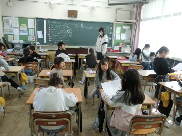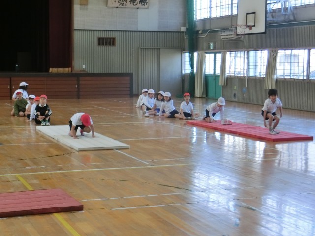 1年生は、算数科「たし算のふりかえりをしよう」を行いました。2年生は、道徳科「3年間のどりょく」を読んで、自分の考えを発表していました。3年生は理科「太陽の光」で、鏡を使って跳ね返した光の進み方を調べるクラスと、体育科「マット運動」で、前転の練習に取り組むクラスがありました。