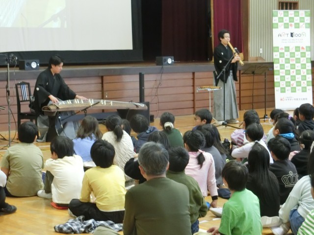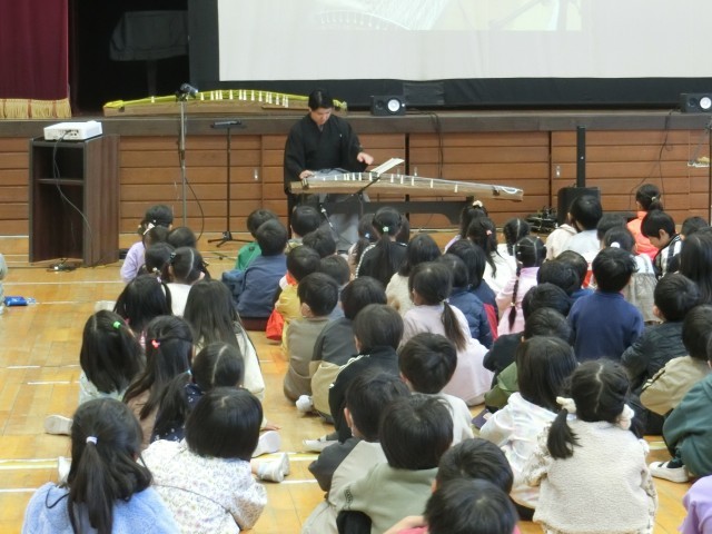 今回は、尺八演奏家である吉越瑛山さんと箏演奏家の吉越大誠さんをお招きして、和楽器演奏会を行いました。本校出身のお二人は、演奏会の間に山王小学校の校歌を演奏してくださり、子どもたちも一緒に歌って音楽を一緒に楽しむことができました。なお、明日7日の19時から、文化フォーラムにてお二人のロビーコンサートが無料で行われますので、あわせてお知らせいたします。かすがい市民文化財団のURLは、こちら⇒ https://www.kasugai-bunka.jp/archives/47236