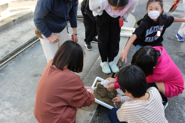 図工の授業で2年生は初めてカッターナイフを使用しました。みんな慎重にカッターナイフを動かしていました。理科の実験では、川の流れを再現して、その川がどのように変化していくのか観察してました。
