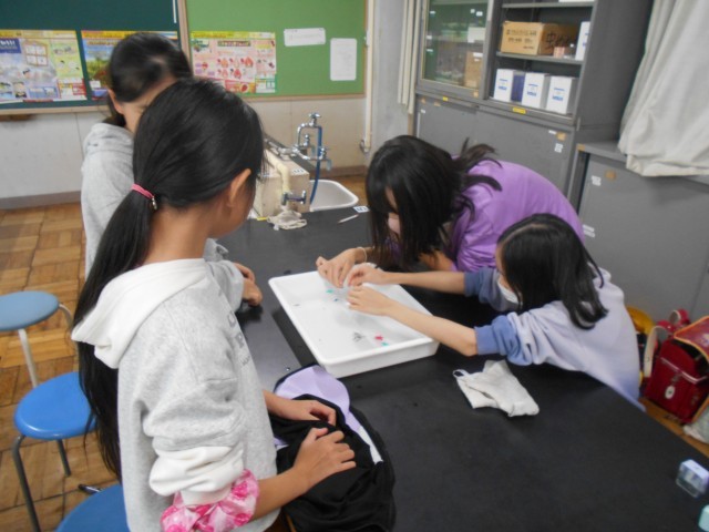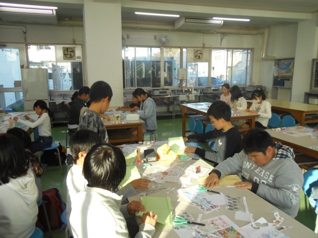 今日はクラブ活動がありました。トートバック作りをしたり、「水に浮かぶ絵」を描いたりしていました。