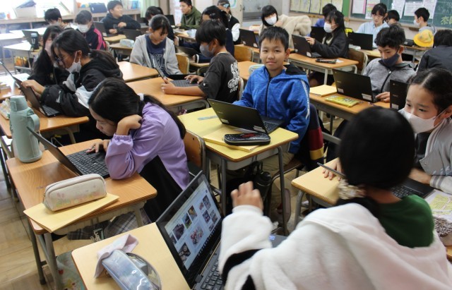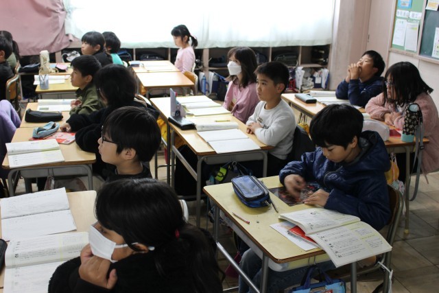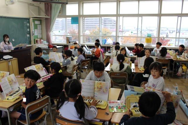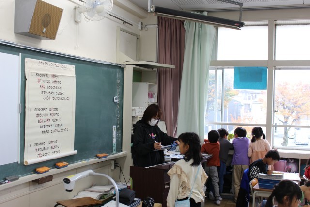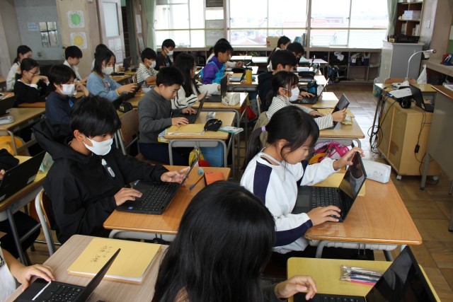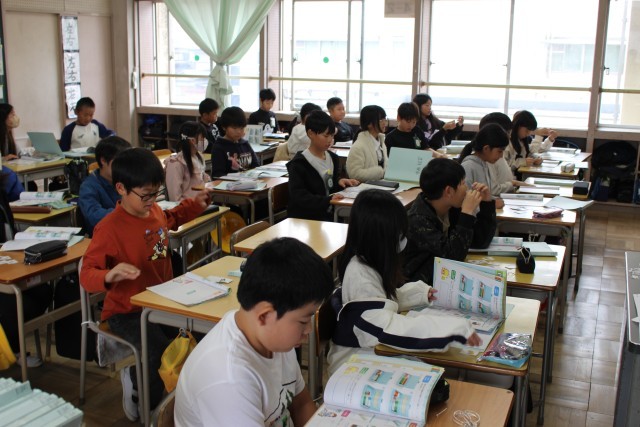 音楽の授業では、校歌のテストをしていました。6年生は明日から修学旅行に行きます。自分達が行く所やお土産などを調べていました。