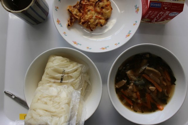 きしめん 牛乳 きしめんの汁 かきあげ でした。