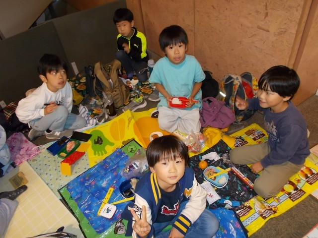 施設の中の遊具でたくさん体を動かして遊び、お昼はおいしくお弁当を食べました。
