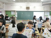 外国語の授業では、どんな食べ物が好きかという聞く練習をしていました。家庭科の授業では、クラスの子と相談ながら学習を進めていました。