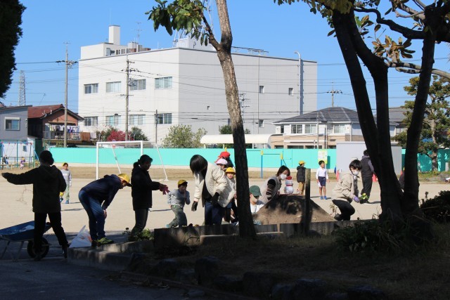 花壇ボランティアの方に花壇をクリスマスバージョンにしていただきました。