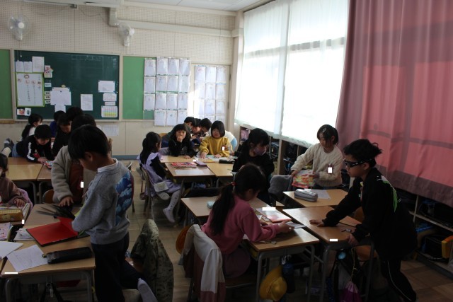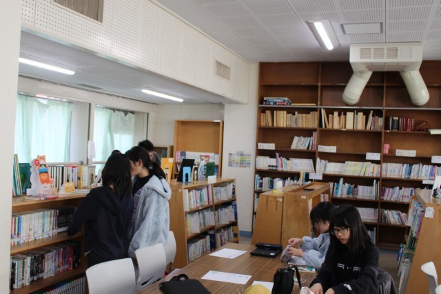 図書委員会では、自分たちが選定した図書を「おすすめの本」に書いていました。国語の授業では、すきなロボットを調べて発表するためにたくさんの図鑑を読んでいました。