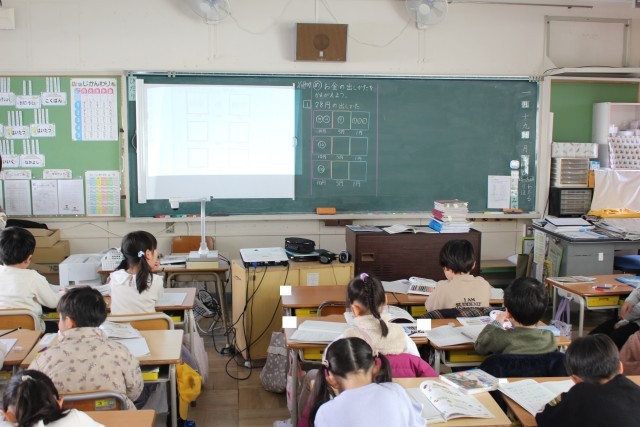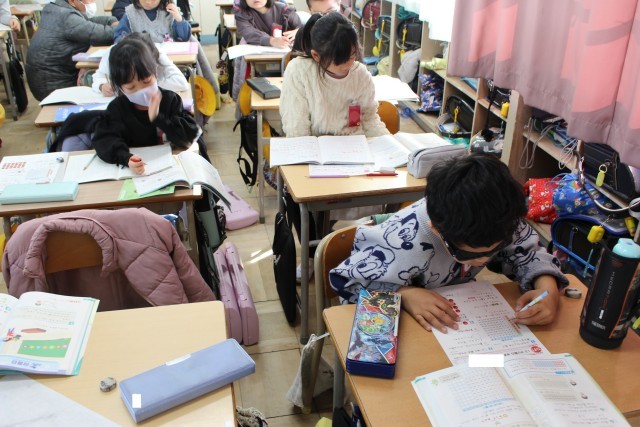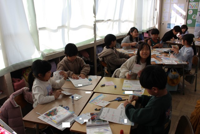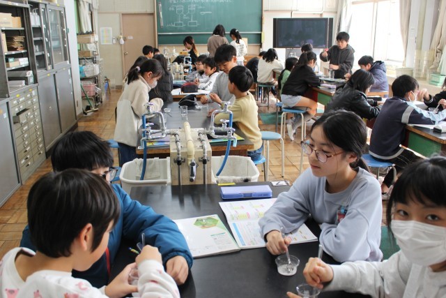 理科の授業では、物を溶かす実験をしていました。生活科の授業では、友達のよいところを書いていました。