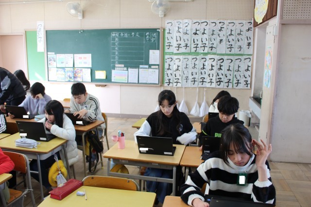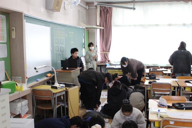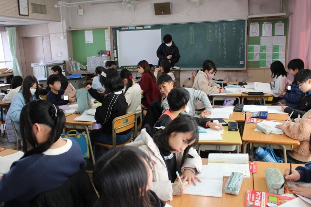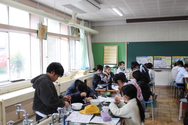 6年生は、授業参観での発表に向けて練習や資料作りをしていました。理科の授業では、物が溶ける量が温度によって変わるか、水の量によって変わるかという実験していました。