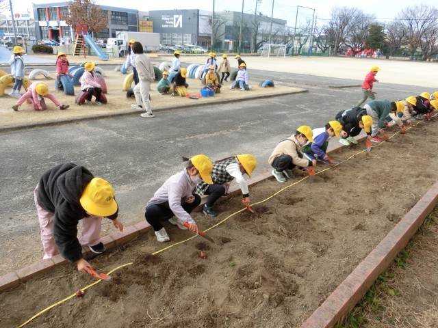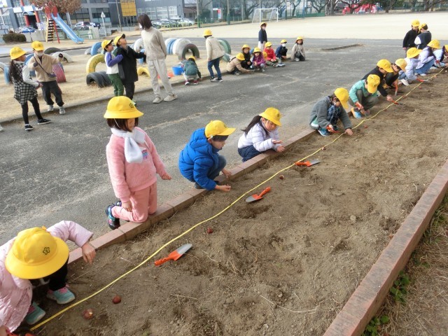 子どもたちは、1時間目に生活科の授業でチューリップの球根を植えつけました。春が来て、チューリップがきれいな花を咲かせるとよいですね。