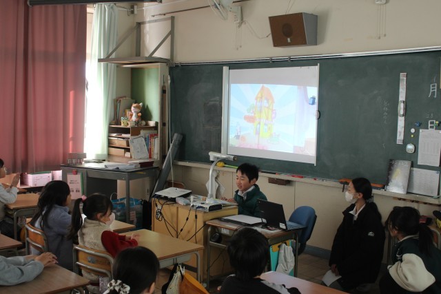 今日は、なかよし班の教室で6年生が読み聞かせをしました。練習をした成果が出ていました。