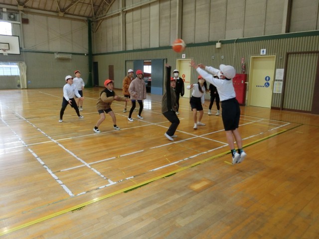 1年生は、運動場でサッカーボールをドリブルする練習を行いました。4年生は、体育館でバスケットボールをパスでつなぐ練習を行いました。どちらのクラスも、寒い中で頑張って取り組んでいました。