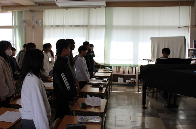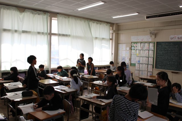 6年生は卒業式で歌う歌の練習をしていました。2年生は、自分の意見をみんなに向かって発表していました。