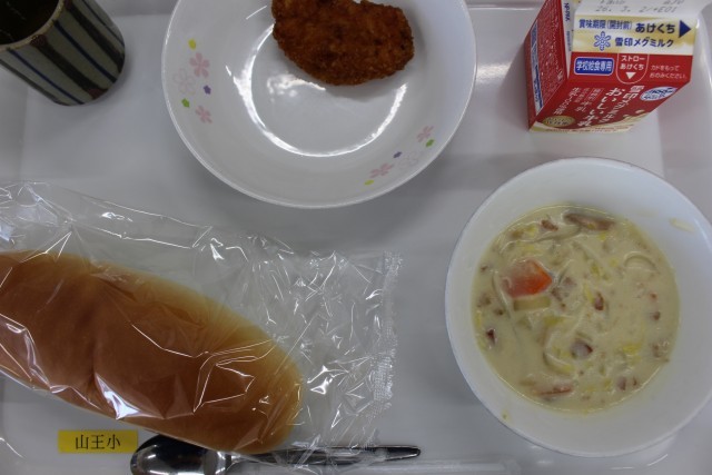 ミルクロール 牛乳 白菜のクリーム煮 みかわあかどりのチキンカツ でした。