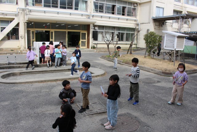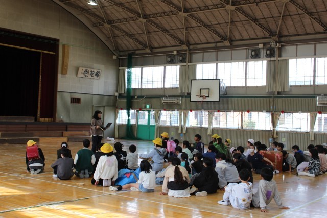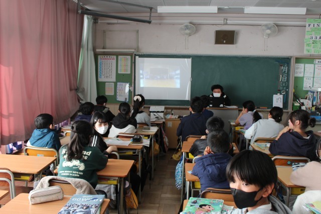2年生は、図工の工作で仮面やベルトを装飾して見せ合っていました。5年生は、今週木曜日にある「6年生を送る会」にむけて練習をしていました。