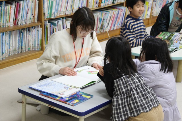 今日は、業前と20分放課に読み聞かせがありました。子どもたちに本の内容が伝わるよう話し方を苦伏していただきました。飾り付けは3月の図書室の飾り付けをしていただきました。