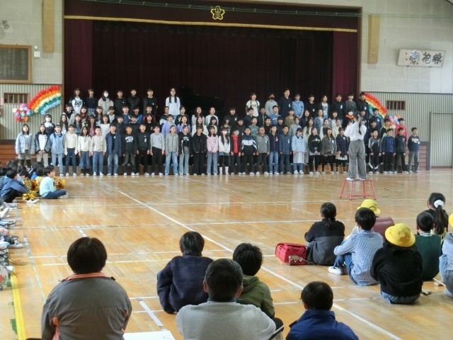 3・4時間目は、全校児童が参加して6年生を送る会を行いました。各学年からの出し物の後に、6年生が全員での詩の群読と合唱を披露しました。どの学年もとても熱量のある発表ができて、大変すばらしかったです。