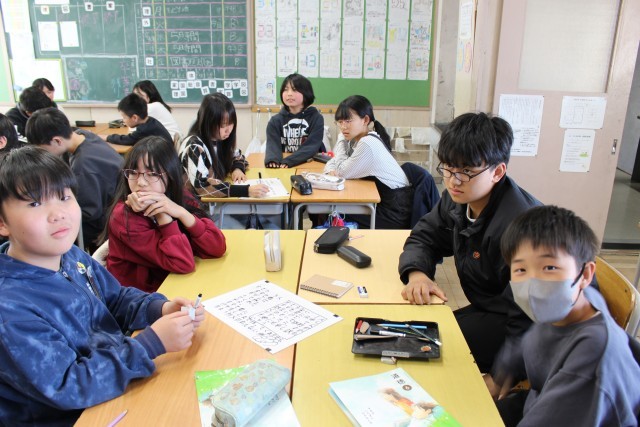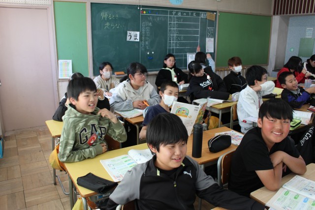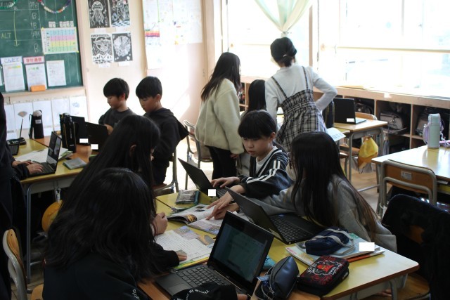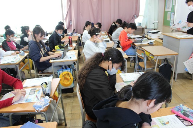 社会の授業では、グループでCMづくりに挑戦していました。道徳の授業では、友達からのプレゼントをどのように扱うか考えていました。
