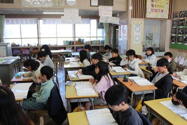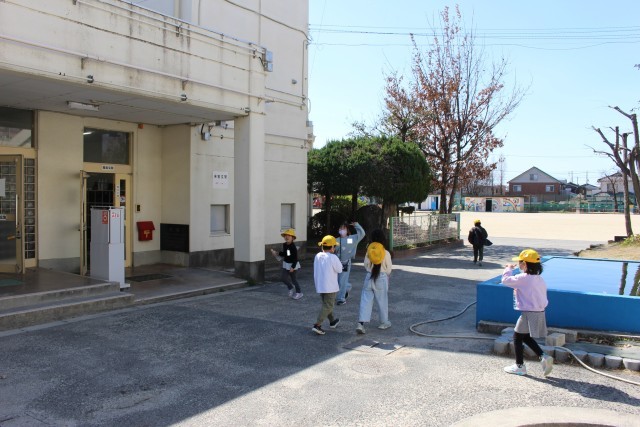 5・6年生は、卒業式の予行練習をしていました。当日の流れを確認しました。1年生は、入学式に向けて花が咲くようにチューリップに水をあげていました。
