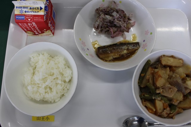 ご飯 牛乳 がめに(福岡県の郷土料理) いわしのしょうがに でした。