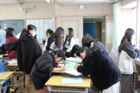 社会の授業では、フィグジャムで市議会や市長の役割についてまとめていました。また、外国語の授業では、英会話を聞いてどのイラストがあてはまるのか考えていました。