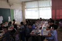 今日の給食は わかめごはん 牛乳 にくじゃが おひたし バナナチップス でした。