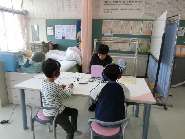 先生から説明を聞いて、保健室で聴力検査を行っていました。国語の時間では、漢字の注...