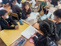 初めて会う先生にドキドキな子ども達も、世界の国々のあいさつを勉強したり、歌を歌ったりして緊張がほぐれ、楽しく学ぶことができました。