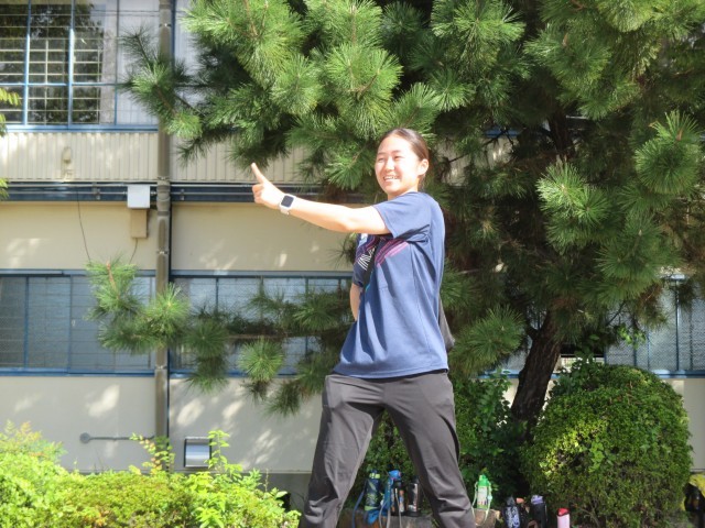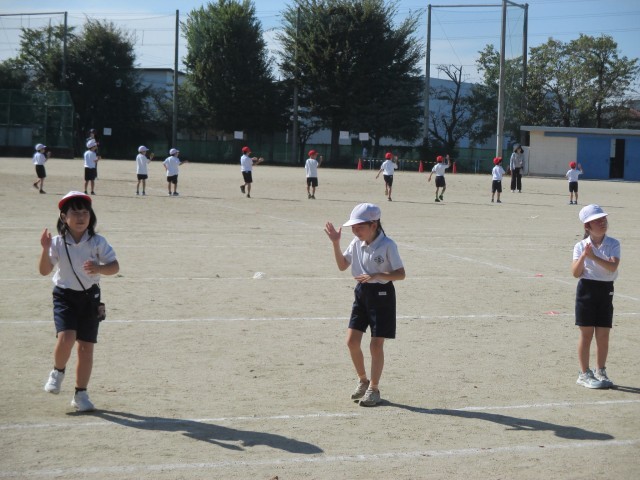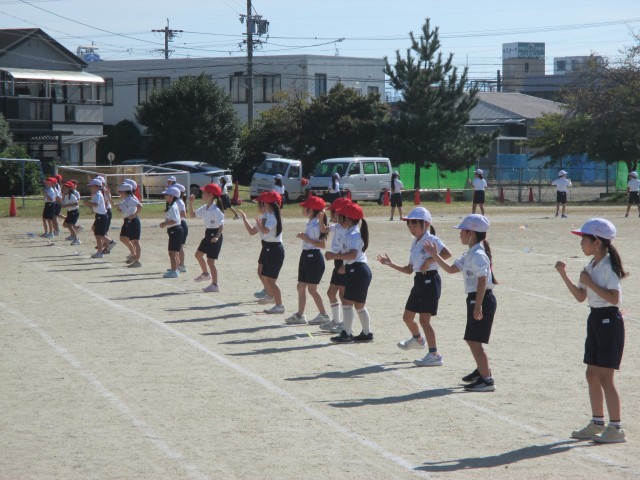 2年生の練習です。可愛らしい動きで、みんなこの曲が大好きです。先生のポーズもきまっています。