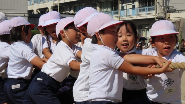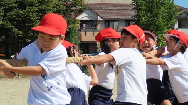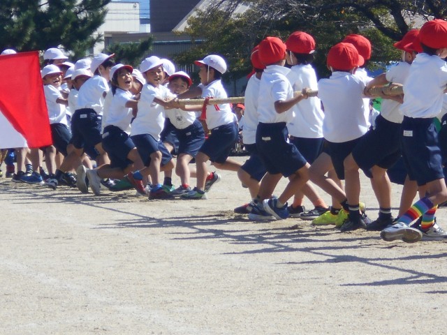 3年生です。力いっぱい綱を引っ張りました。