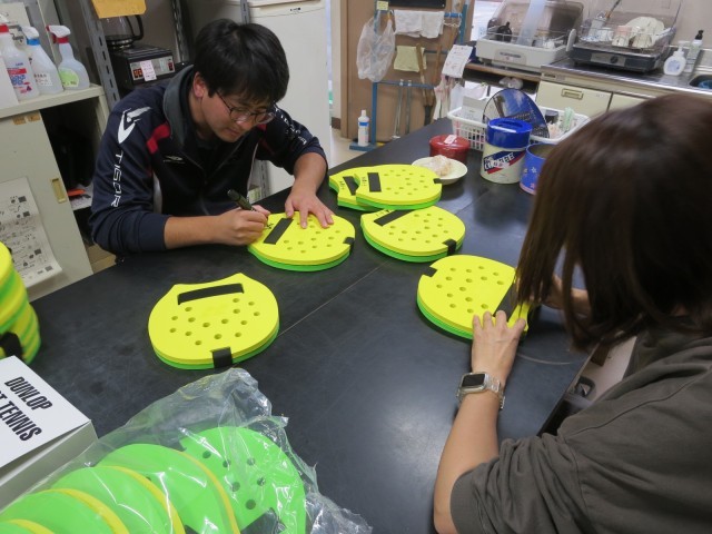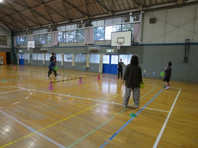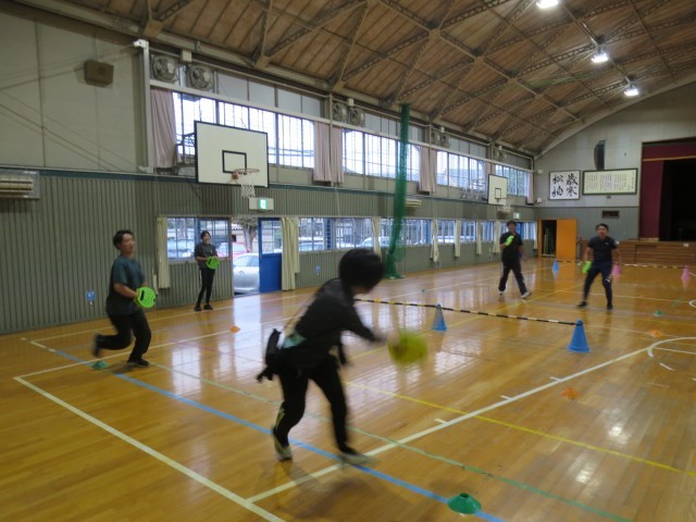 どうやら手にはめて使うようです。早速、先生たちで「松原小」とネーミングして、体育の授業で使えるようにしました。そして、先生たちが体験してみました。とても楽しそうですよ。