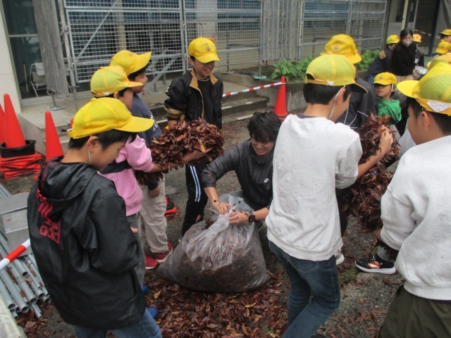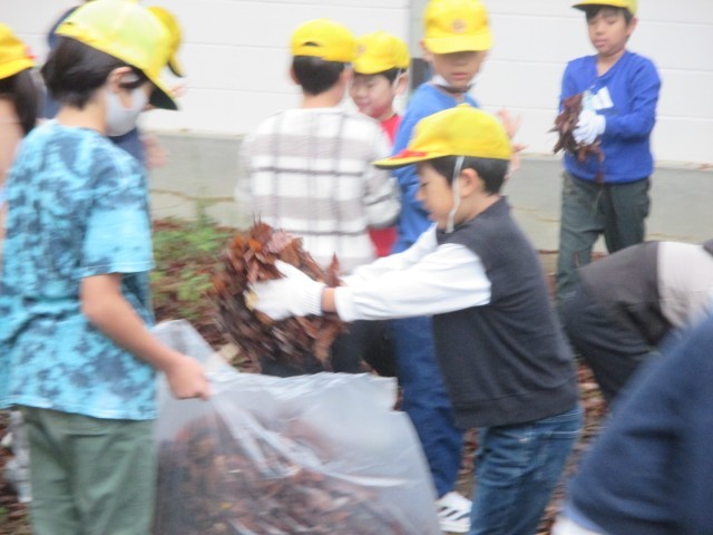 11/10 落ち葉拾い2年生と5年生