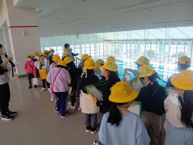 サンフロッグ春日井では、プールのしくみや使い方について説明を聞き、実際にプールを見せてもらいました。