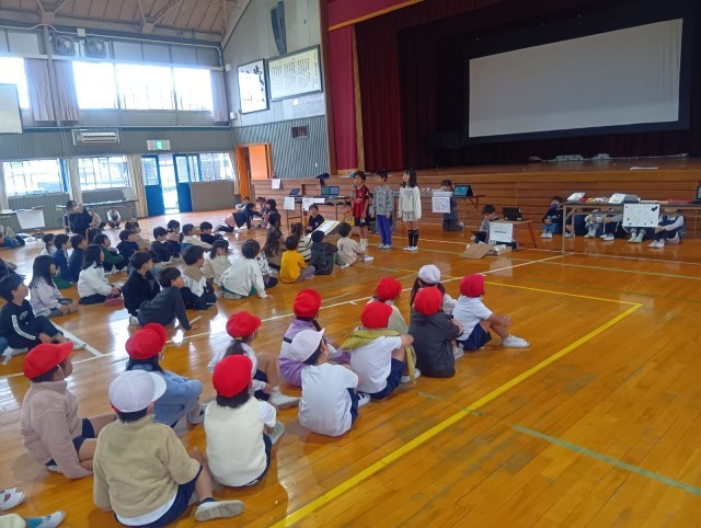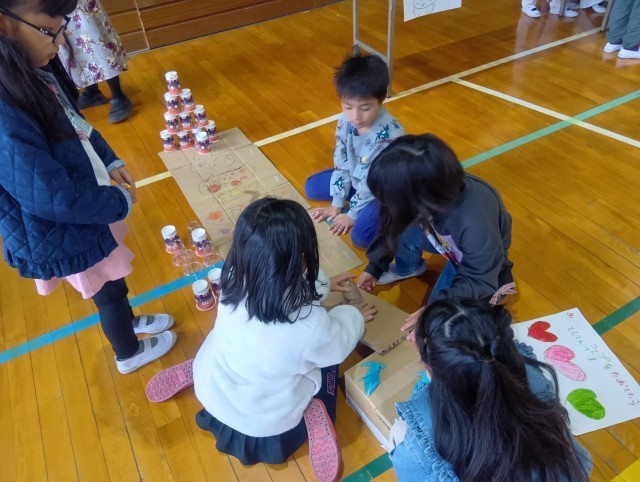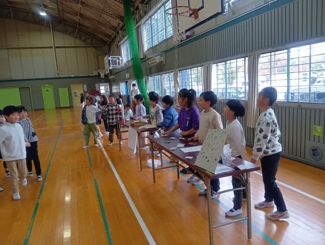 年生はお店の人になって、1年生に遊び方を説明したり、やさしく声をかけたりしていました。自分たちが工夫したお店で喜んでもらい、大満足の様子でした。