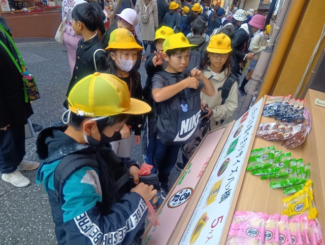 清水寺の参道に並ぶお店で、お土産を選びました。班ごとにはぐれずに行動することができました。
