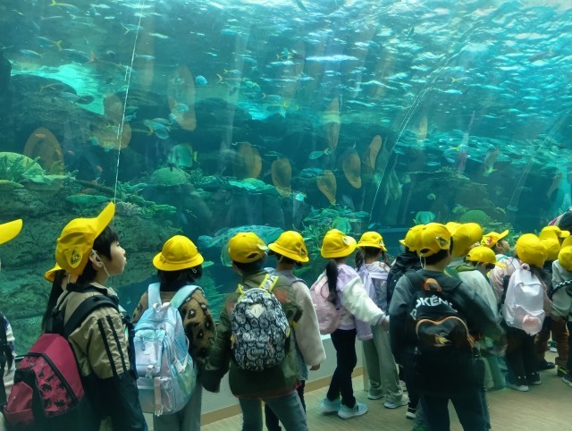 校外学習で、名古屋港水族館に行ってきました。小学校で初めてのバスでの校外学習。運転手さんに「お願いします。」「ありがとうございました。」と、きちんと挨拶もできました。イルカショーを見たり、海の生き物を見たりして、とてもわくわくした様子でした。保護者の皆様、お弁当の準備等ありがとうございました。