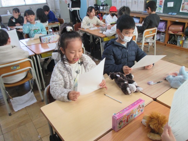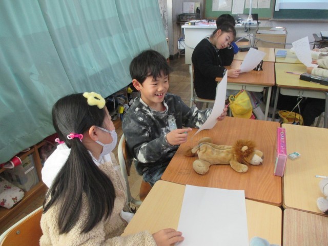 今日のにっこりタイムは「いいとこみつけ」です。2学期を振り返り、友達のいいところを探します。