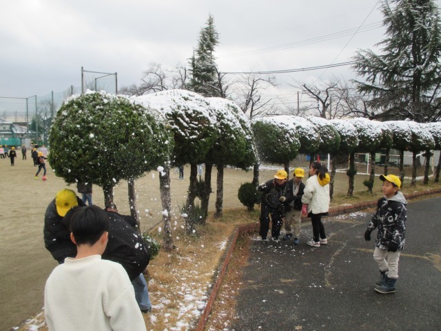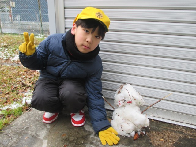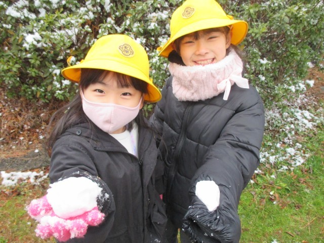 昨夜は雪が降り、木や芝生はうっすら雪景色。今も雪がちらついています。気温が低いので、温かい格好で雪の感触を楽しみます。明日明後日も雪が降る予報です。気を付けて過ごしてください。
