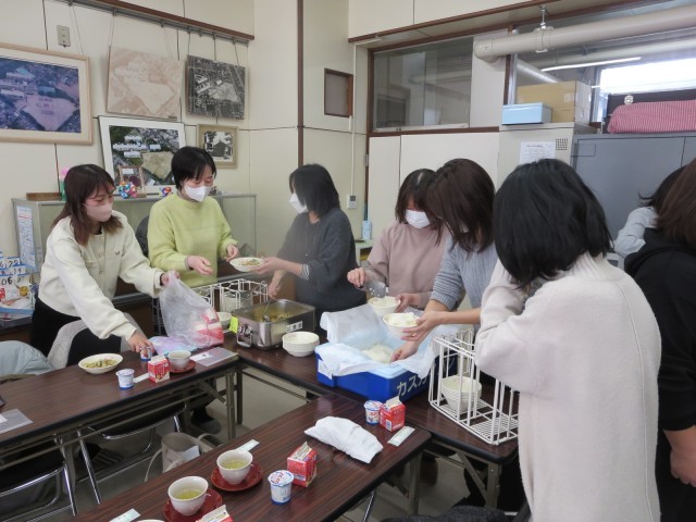 みんなで配膳して、給食を味わいました。紙パックになった牛乳の飲み方やおかずのすきやきが温かいこと、おひたしの味付けのことなど、給食のことについて話したり、子育てや学校のことを話したりしました。子どもたちの給食の時間のようすも見ていただき、有意義な時間になりました。参加していただいた保護者の皆様、ありがとうございました。