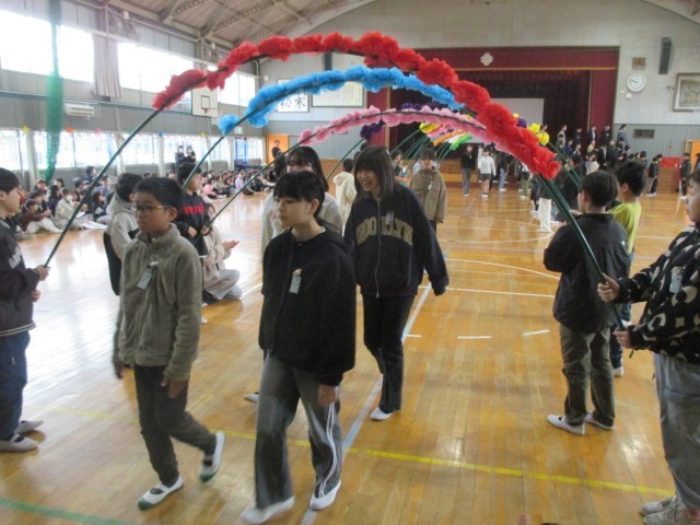 5年生が主体となり、「6年生、今まで学校を支えてくれてありがとう」と気持ちを伝えることができた会となりました。どの学年も、気持ちをこめて発表していたので、とても穏やかで、清々しい雰囲気中、会が進みました。うれしそうな表情、泣けてくる表情、大きな声で一生懸命口を開ける表情、思い出に浸る表情・・・みんないい顔をしていましたね。
