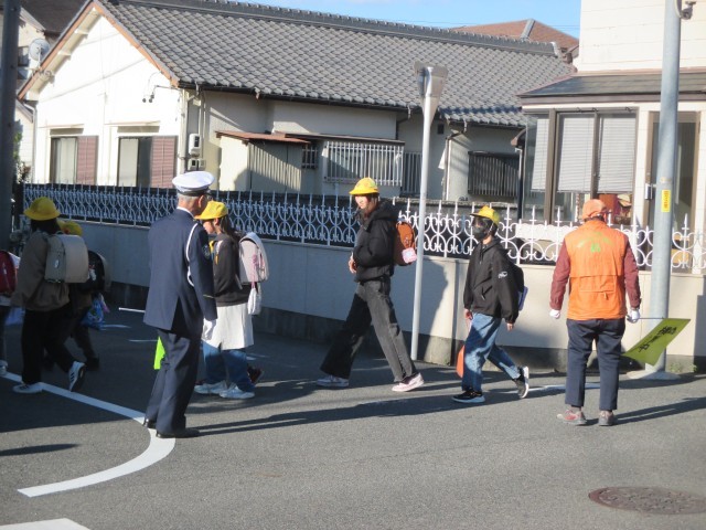 春日井警察の警察官と市役所の職員が登校の様子を見守ってくださいました。子どもたちは、制服を着ている警察官がいたり、学校にパトカーが止まっていたりしたので「何かあったの?」と心配してくれました。警察官の方が「安全に並んで登校していますね」とほめてくれました。どんな時でも優しく声をかけ合う松原っ子は素晴らしいです。