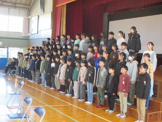 今日は通して総合練習を行いました。5年生は当日の式には参加しません。そのため、本番さながらの今日の練習に参加して、次年度に向けて卒業式の雰囲気を感じました。式辞では、校長先生が大切にしている3つの「あ」について、なぜそう思うのか、小学校時代のエピソードを話してくれました。「いつも褒められる子が決まっていて悔しい思いをしていたこと」「初めて先生がみんなの前で名前を呼んで褒めてくれたこと」「だれも助けてくれない思いがあったこと」「ある子が勇気をもって「やめて」と言ってくれたこと」などなど。どれも心に響くお話でした。
