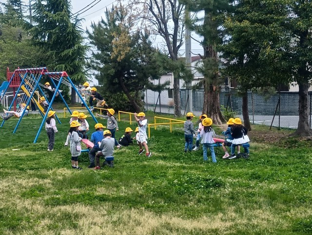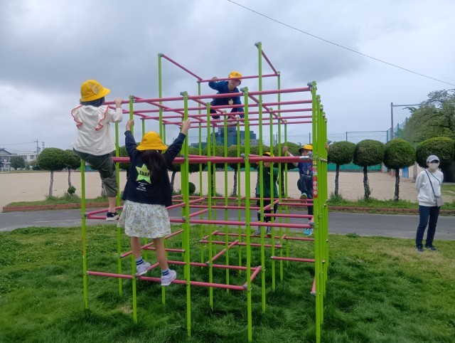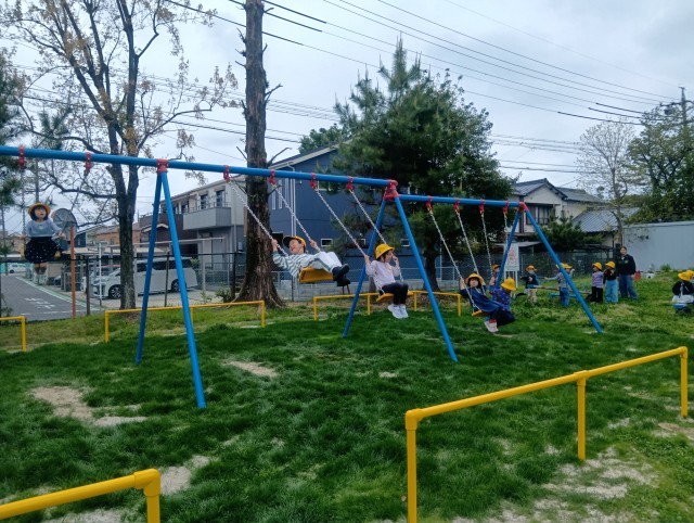 「にこにこ広場」には、ジャングルジム、ブランコ、シーソーがあります。