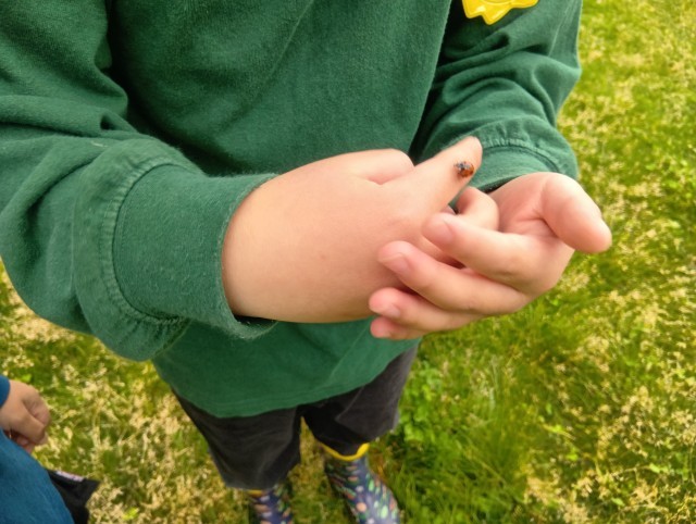 虫探しを楽しんでいる児童もいます。テントウムシを発見です☆!