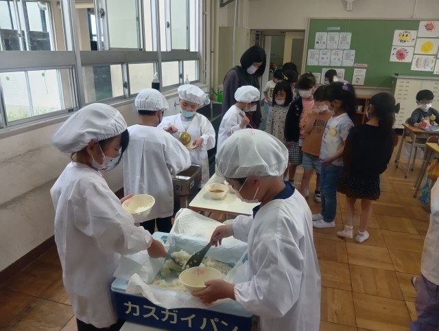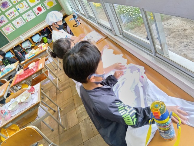 机の上の準備の仕方、白衣の着方、当番の仕事の仕方、配膳の仕方、片付けの仕方・・・