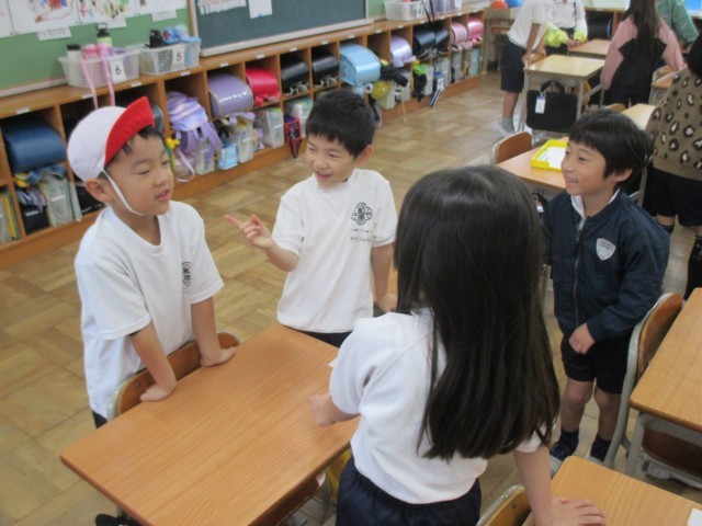 今日のにっこりタイムは「一分間スピーチ」です(1年生は「どちらをえらぶ」です)。一分間、自分の意見を話すことはとても難しいです。しかし、少しずつ、長くスピーチができるようになってきています。おうちのこ...