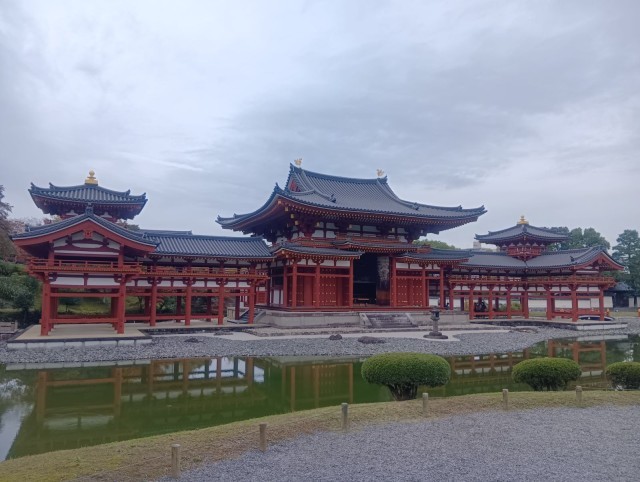 平等院鳳凰堂を見学しました。十円玉でおなじみてすが、本物はすばらしいです。紅葉も進んでいて、秋を満喫できました。平等院鳳凰堂を予定より少し早く出発して、昼食の平城京跡に向かいます。