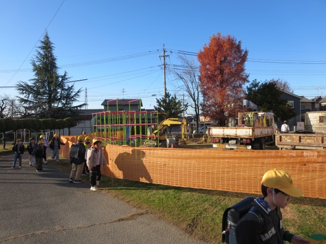 にこにこ広場の遊具の工事が終わり、新しいブランコとジャングルジムが完成しました。工事中、子どもたちは興味津々で工事現場をのぞいていました。去年、滑り台が新しくなり、ぴかぴかのにこにこ広場です。大切に使...