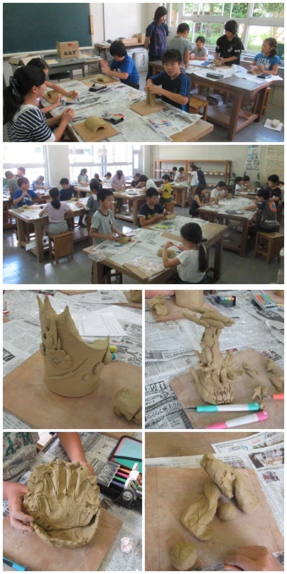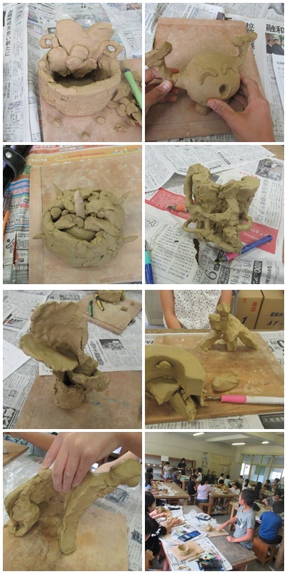 5年生 図工「心の形」というタイトルで、粘土で作品を作っています。いろんな表現があります。
