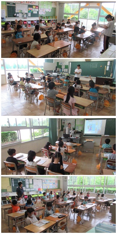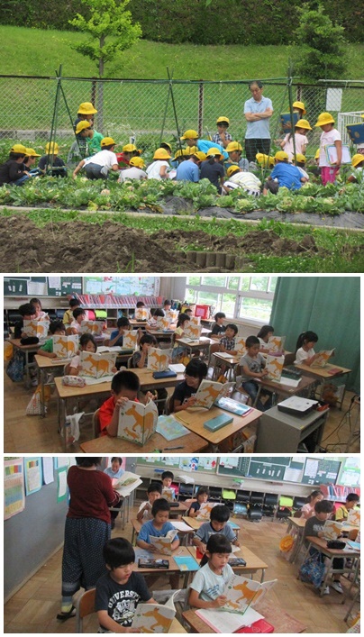 2年生 音読の姿勢が良いですね。 夏野菜の観察をしています。